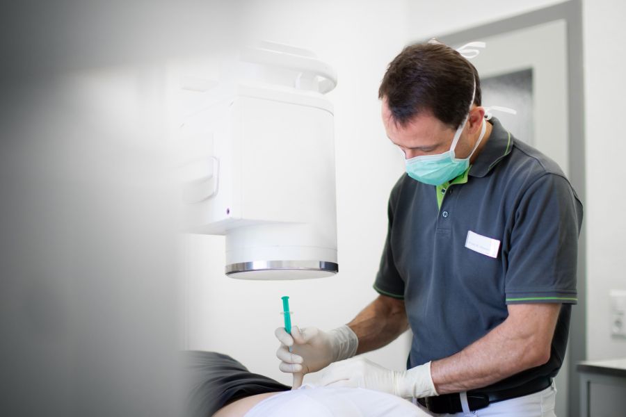 Der sogenannte Ramus dorsalis ist ein Nerv, der an den kleinen Wirbelgelenken nur eine einzige und damit für uns Menschen eine sehr Lebensqualität beeinträchtigende Funktion hat: Die Weiterleitung von Schmerzen. Diesen Nerv kann an einer knöchern markanten Stelle unter Durchleuchtungskontrolle sehr gut aufgesucht werden. Durch ein lokal verabreichtes kurz und länger wirksames Betäubungsmittel wird festgestellt, ob dieser Nerv für den Schmerz verantwortlich zeichnet. Die Linderung tritt innerhalb von 5-15 Minuten ein und hält bis zu drei Stunden. Gelingt die Schmerzausschaltung zwei Mal innerhalb von zwei getrennten Behandlungssitzungen um wenigstens 50%, so ist man nach derzeit gültigen Leitlinien einig, dass eine sog. Facettendenervation hilfreich ist. Bei diesem Verfahren wird dieser Nerv mit einer Thermosonde aufgesucht, nach vorheriger Betäubung auf 80° C erhitzt und somit die dauernde Schmerzweiterleitung verhindert. Dieses Verfahren wird Facettendenervierung oder auch Facettendenervation genannt. Das Verfahren wird bei uns in der Praxis ambulant durchgeführt und zeichnet sich durch eine sehr geringe Nebenwirkungsrate aus. Diese sind z.B. leichte Schmerzen an der Einstichstelle, ein bis zwei Tage andauernde geringe Schmerzen bei Bewegung, die mit einfachen Medikamenten wie beispielsweise Diclofenac oder Ibuprofen gelindert werden können.