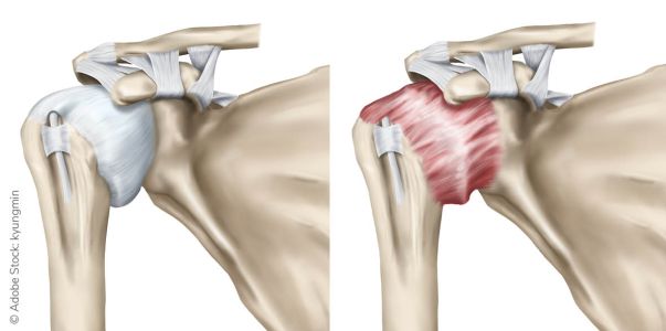 Normales Schultergelenk und entzündete Gelenkkapsel